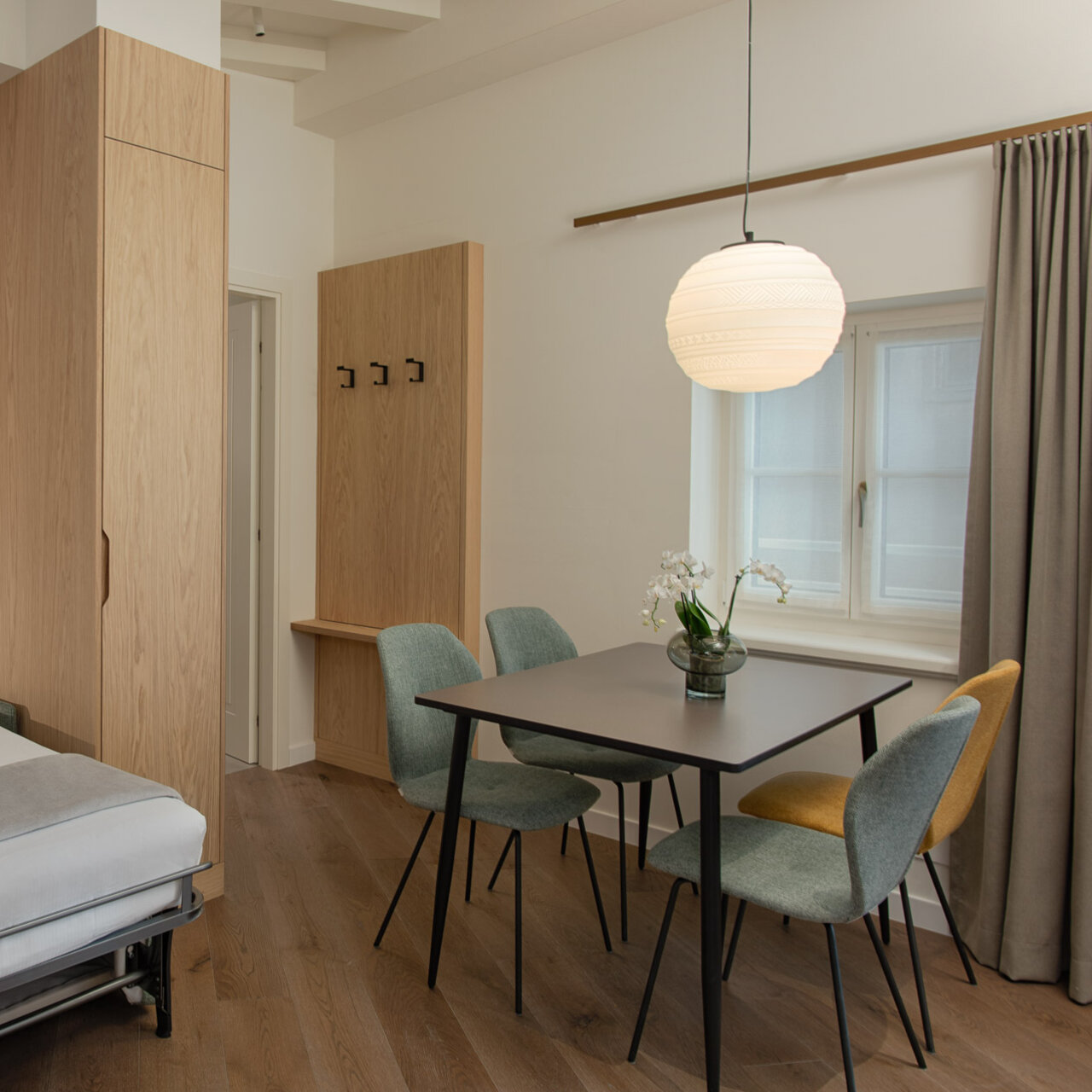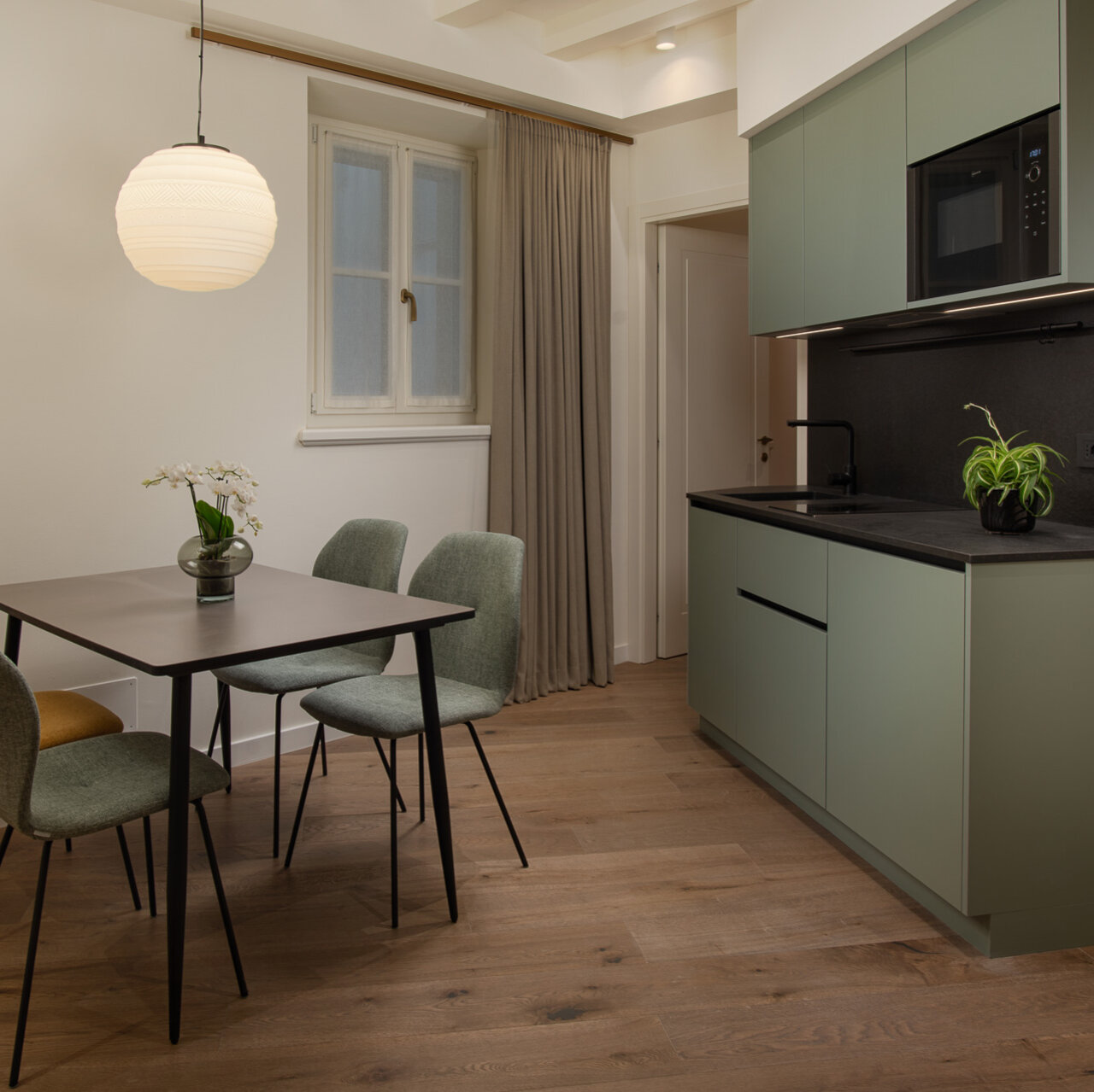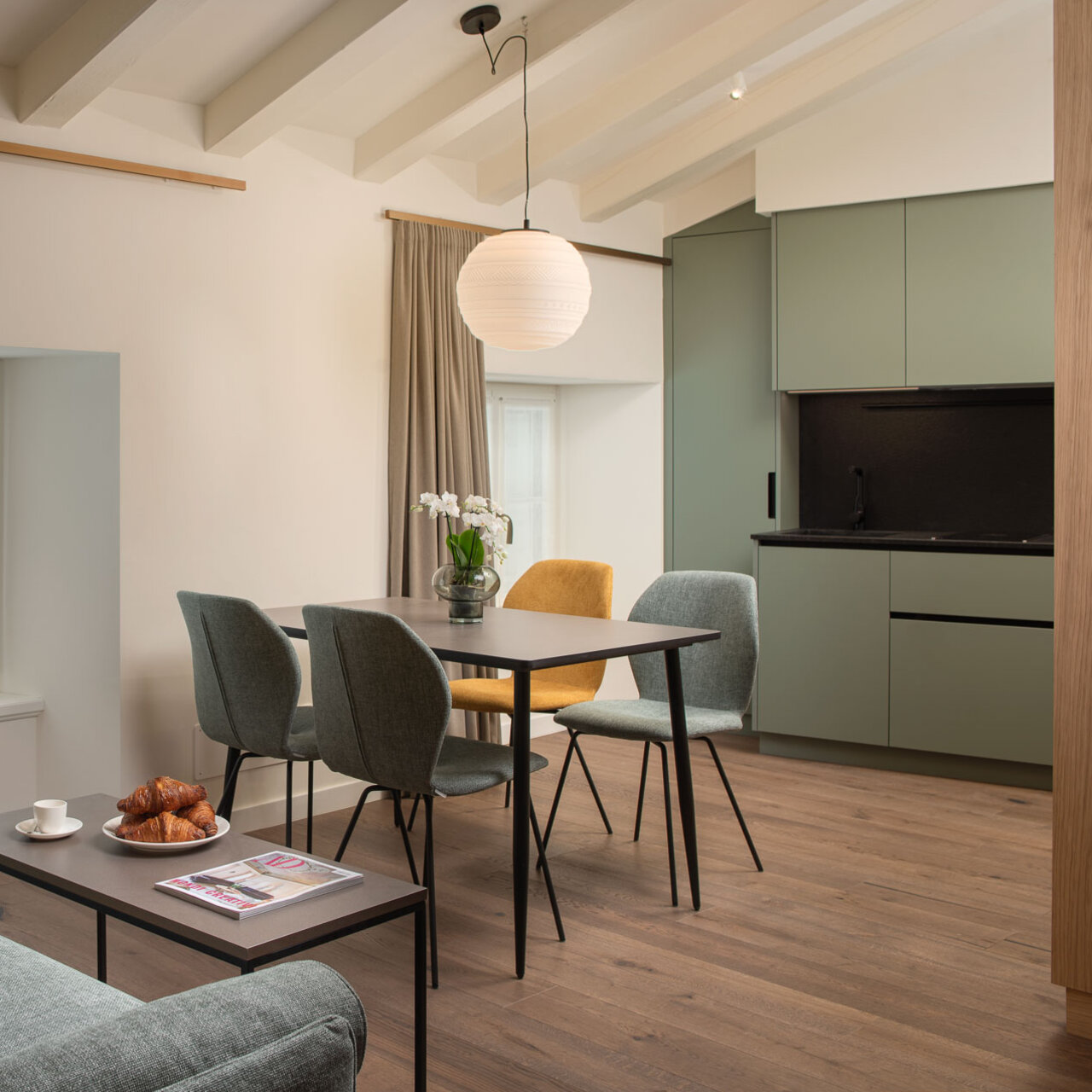Dietro alle mura sotto tutela dei beni culturali di Palazzo Ca'Argento vi attende la cultura del presente. Otto appartamenti vacanze nuovi e completamente accessoriati con un arredamento di alta qualità arricchito da materiali scelti e dettagli di stile. Un soggiorno in un ambiente moderno dietro a mura storiche. Accomodatevi.